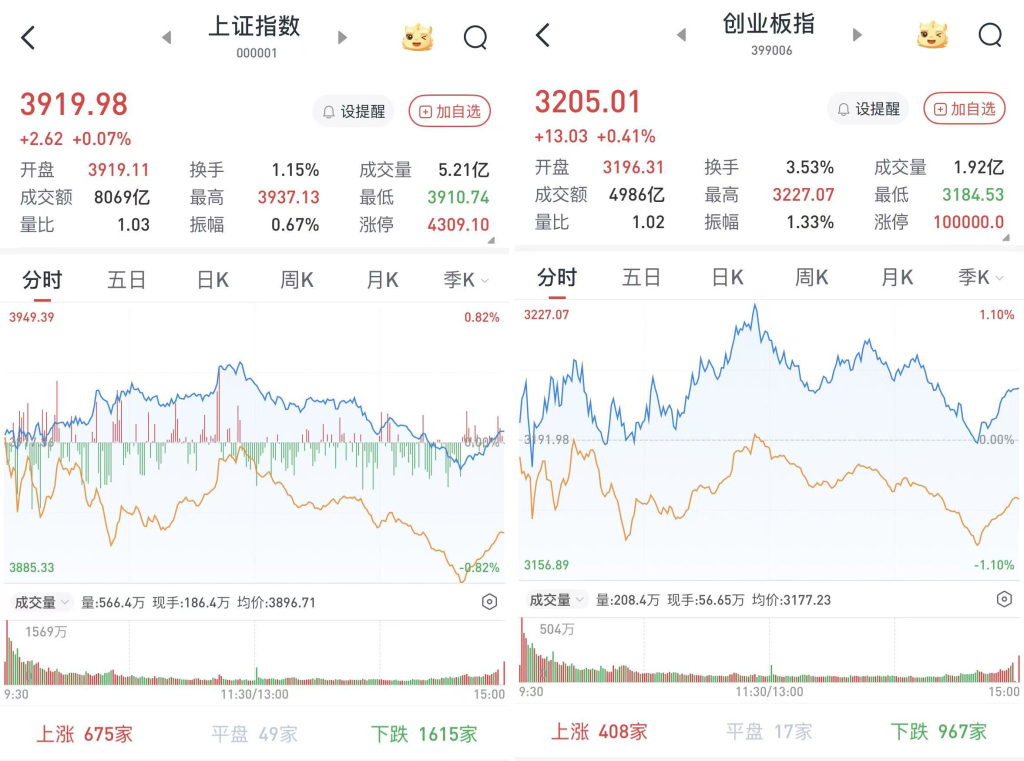 至收盘,上证综指涨0.07%,报3919.98点;科创50指数涨0.36%,报1340.02点;深证成指涨0.27%,报13368.99点;创业板指涨0.41%,报3205.01点。