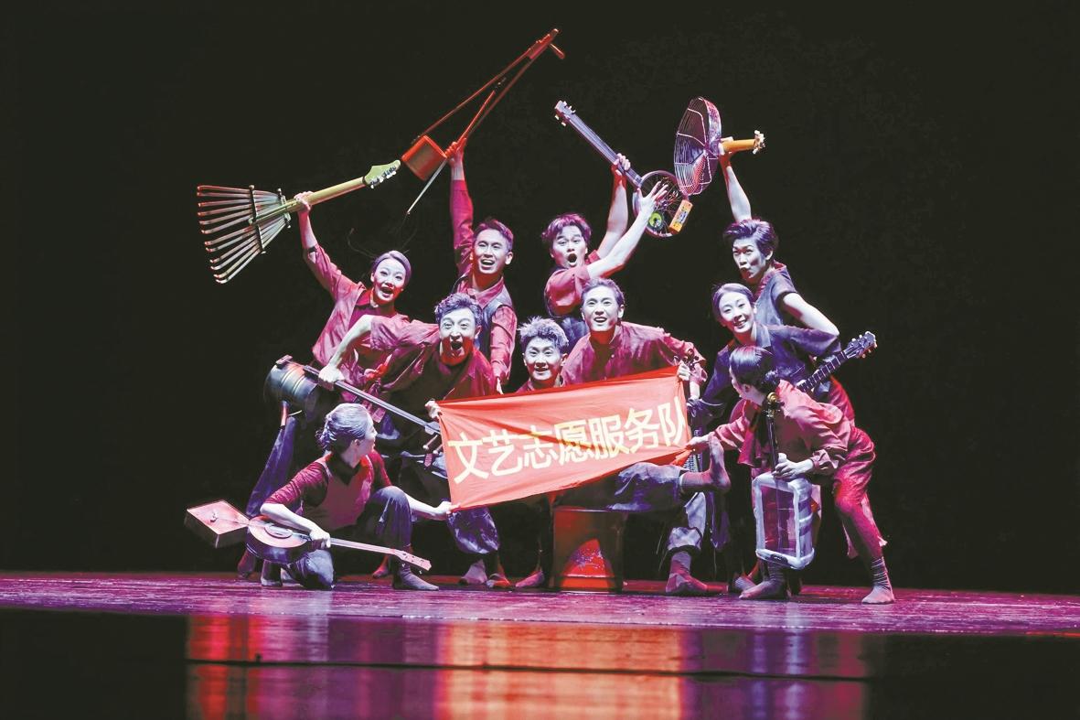 群舞《弦歌晚乐》以夸张诙谐的肢体语言,聚焦老年人“老有所乐、老有所为”的生动故事,展现空巢老人变废为宝、组建“再生乐队”的感人情节,诠释“艺术源于人民、服务人民”的创作真谛。