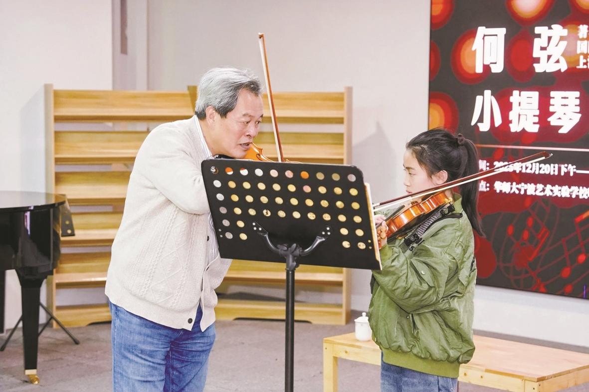 本次大师课特邀著名小提琴教育家、演奏家、上海音乐学院教授何弦,以“名师领航·弦动甬城”为主题,为宁波地区的小提琴学员、教师带来深度指导,展开艺术交流。