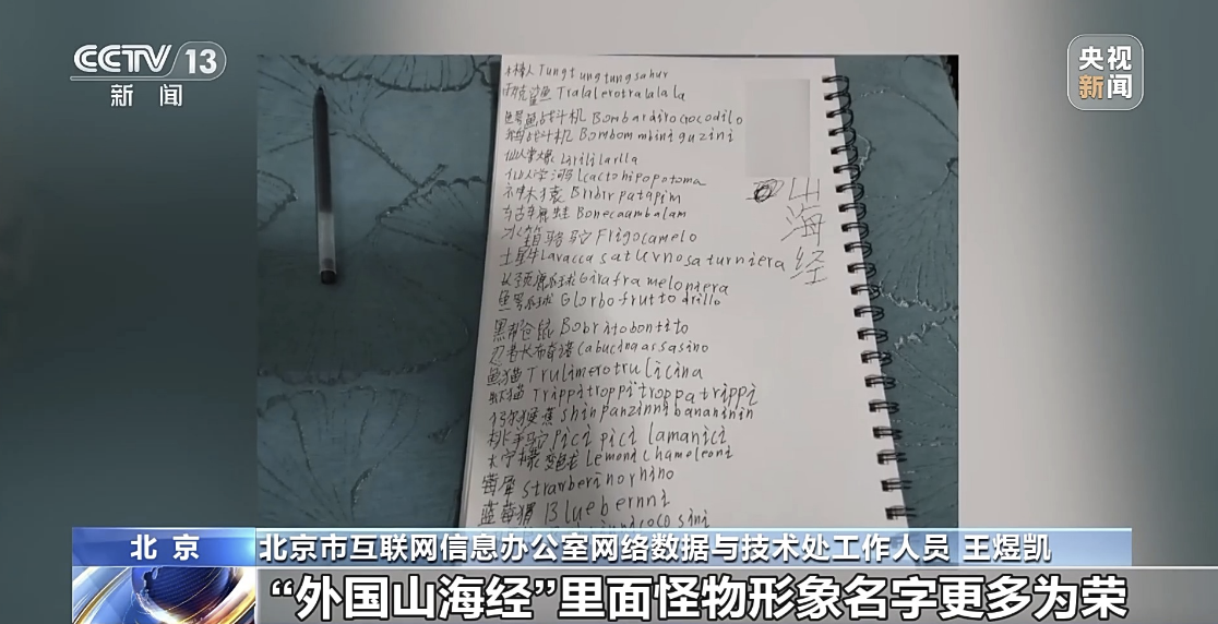 有家长反映,孩子写作业时,会模仿其中的怪物发出怪异声音,“课文都背不下来,却能背下来外国山海经”。还有网友晒出了手写的“角色名单”,纸上密密麻麻地抄满了这些AI形象的名称。