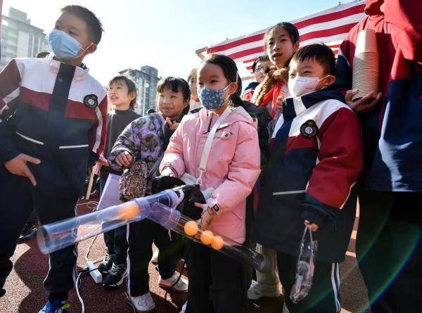 “看见”声音、磁场探秘、液体分层、空气大炮……昨天下午,宁波艺术实验学校举行以“雅智创想”为主题的校园科学实验嘉年华活动,通过静态展示和互动游戏方式,让数千名学生在欢乐中感受科学的神奇魅力。(甬派客户端宁波日报记者 徐诚 通讯员 应混娇 周琦娜 )