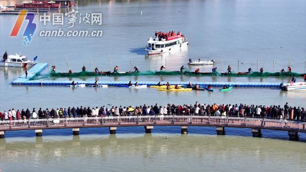 “起网喽!”一声高亢的号子响起,十多位渔民同时发力收网,平静湖面霎时浪涌鱼跃。阳光下,万鳞欢腾,水花激荡,场面热烈壮观。今天上午,2026“钱湖有渔”东钱湖跨年冬捕季在东钱湖阿拉寻梦岛水乐园正式启幕。