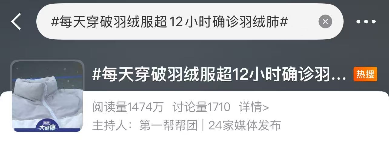 福建省人民医院急诊科副主任医师邵丹解释,羽绒中含有的微小蛋白颗粒被持续吸入肺泡后,即便对于非过敏体质者,也可能引发免疫反应并攻击肺组织,因此这种疾病也被称为“羽绒肺”。
