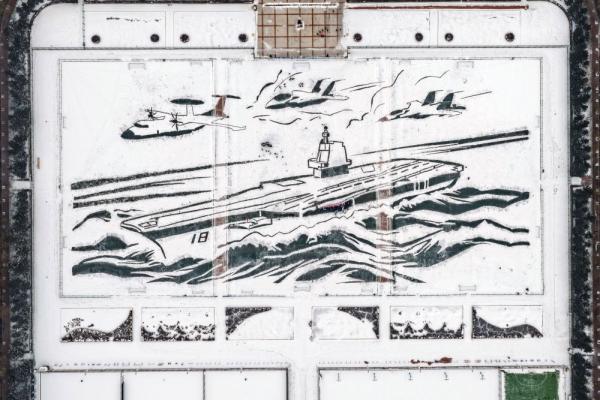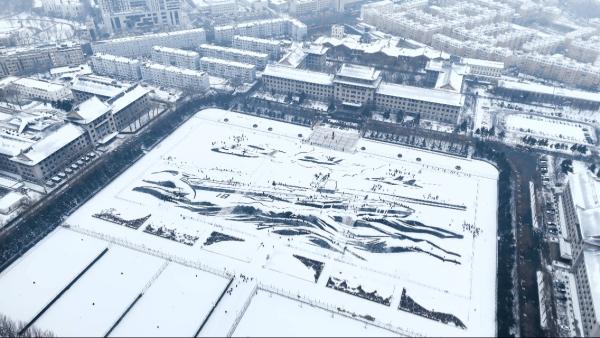 在230米长、112米宽的军工操场上,一艘威武的“福建舰”航母破雪而行……12月28日上午,哈尔滨工程大学1200余名师生以雪为卷、以锹为笔,冒着零下十几摄氏度的低温,绘制了大国重器的雄姿,更通过北斗卫星定位等专业技术,实现了一场冰雪艺术与硬核科技的碰撞。