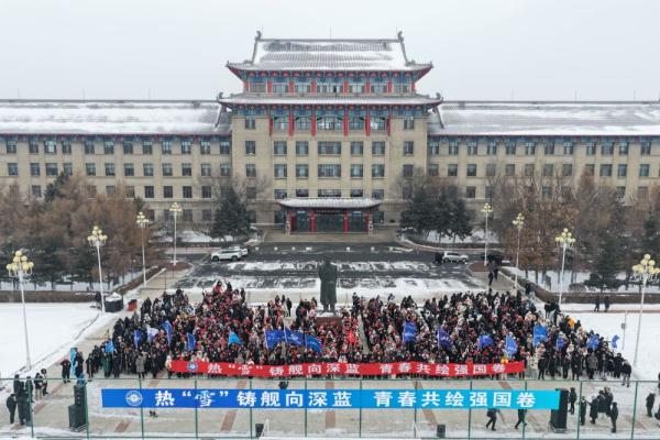 硬核浪漫!高校千余师生雪绘航母福建舰