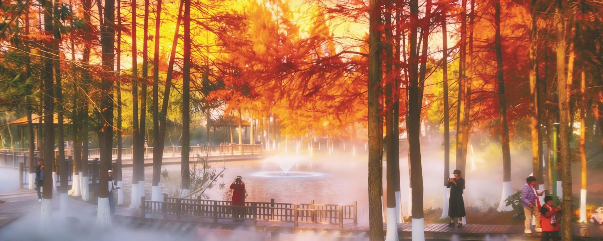入冬后,日湖公园的水杉林美成了一幅油画。通讯员 潘旭光 摄