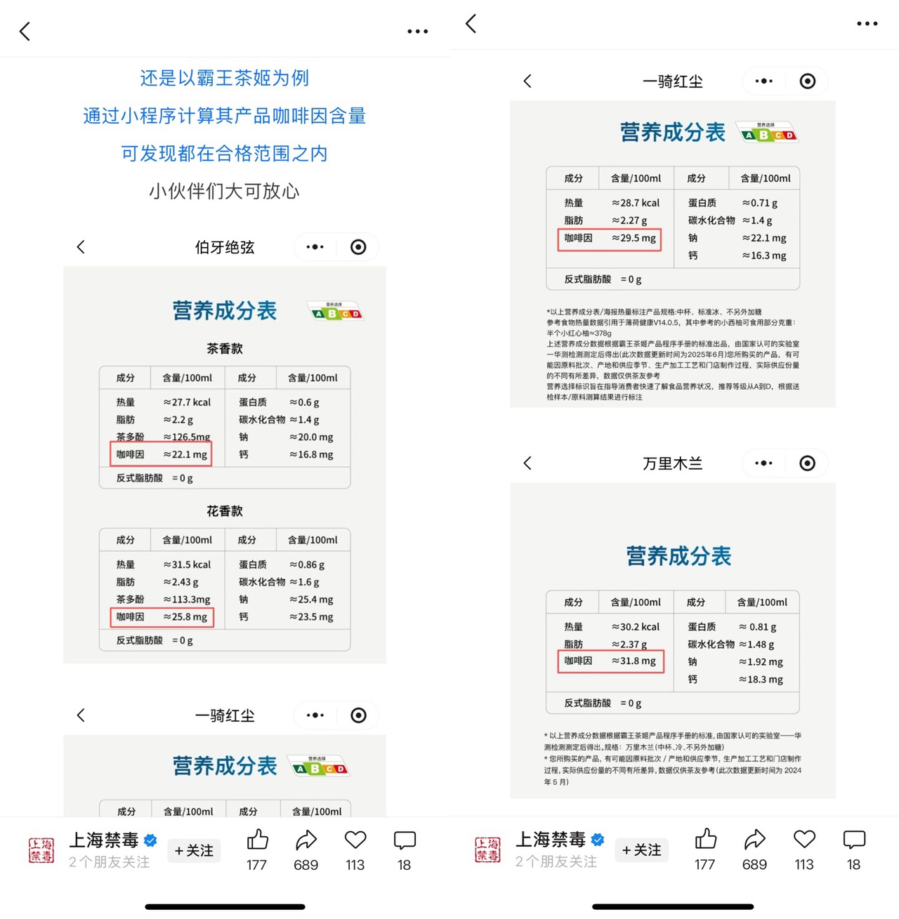 专家呼吁,消费者应根据自身体质合理选择饮品,尤其是对咖啡因敏感的人群,应注意饮用时间与份量。目前,包括霸王茶姬在内的多家新茶饮品牌已在产品页面主动标注“原叶真茶,含有咖啡因”等提示信息,并积极探索低因、无因茶饮的研发,以满足多元化需求。