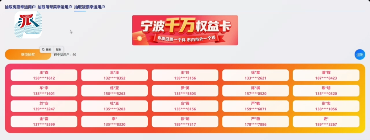中奖人信息公布