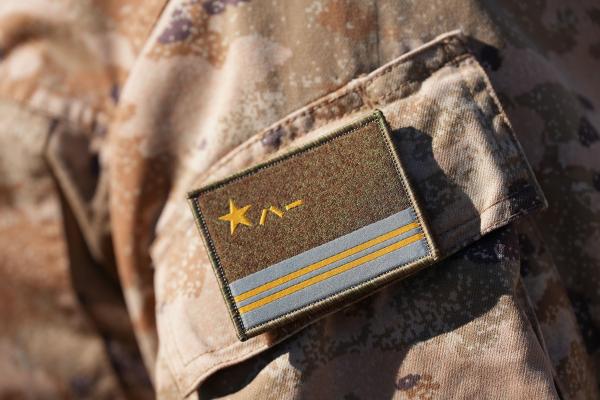 军旗臂章上半部保持解放军军旗旗面基本式样,下半部为深空蓝镶嵌金黄色条,象征进军浩瀚太空。