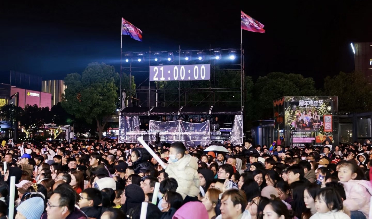 鄞州印象城则通过音乐节的形式,为年轻人打造了一个充满活力的跨年派对。现场乐队表演、DJ打碟、互动游戏等环节让市民沉浸式感受跨年氛围。