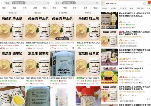 一些网购平台销售“俄罗斯蜂王浆”。网络截图