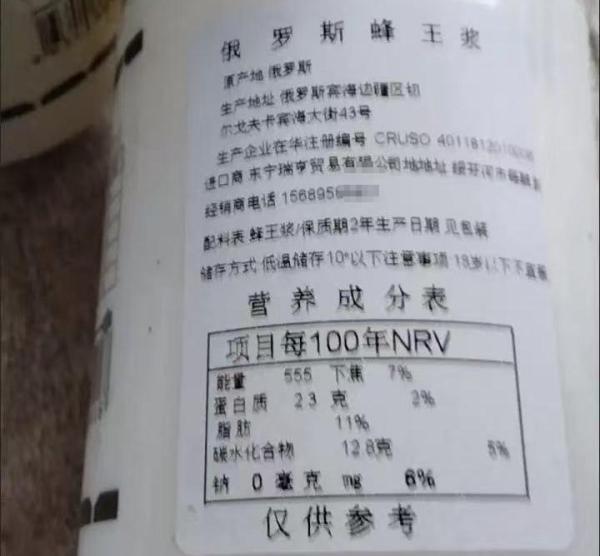 一款网购平台在售“俄罗斯蜂王浆”展示的产品信息。网络截图