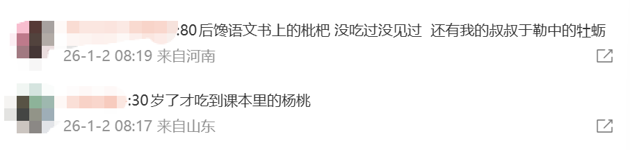杨桃也是很多网友的记忆点,有网友说“30岁了才吃到课本里的杨桃。”还有80后说馋语文书上的枇杷,因为“没吃过没见过”。