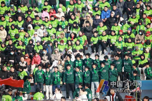 受较强冷空气影响,宁波在元旦假期迎来降温。寒风加持下,看台上的观众都穿上了厚厚的冬装。记者手机上的天气预报显示,体感温度在0度以下。不过,看台上却是一番炽热景象。其中,客队拉拉队人数虽少,但是声音足够响亮。
