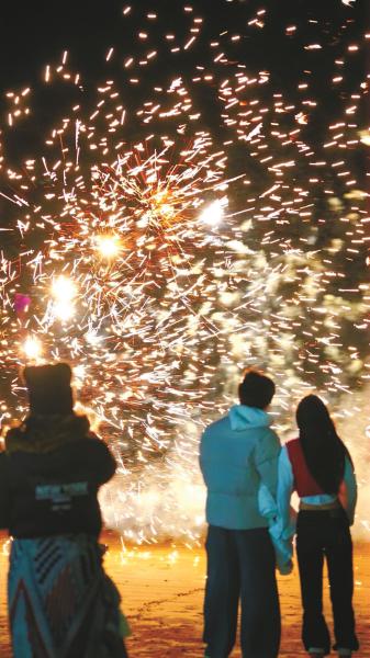 作为象山跨年的核心阵地,宁波松兰山滨海旅游度假区以“搭‘火’跨新年”为主题,化身欢乐的海洋。数千名游客从各地奔赴而来,沉浸式体验趣味互动、非遗绝技展演、跨年音乐会等特色活动。