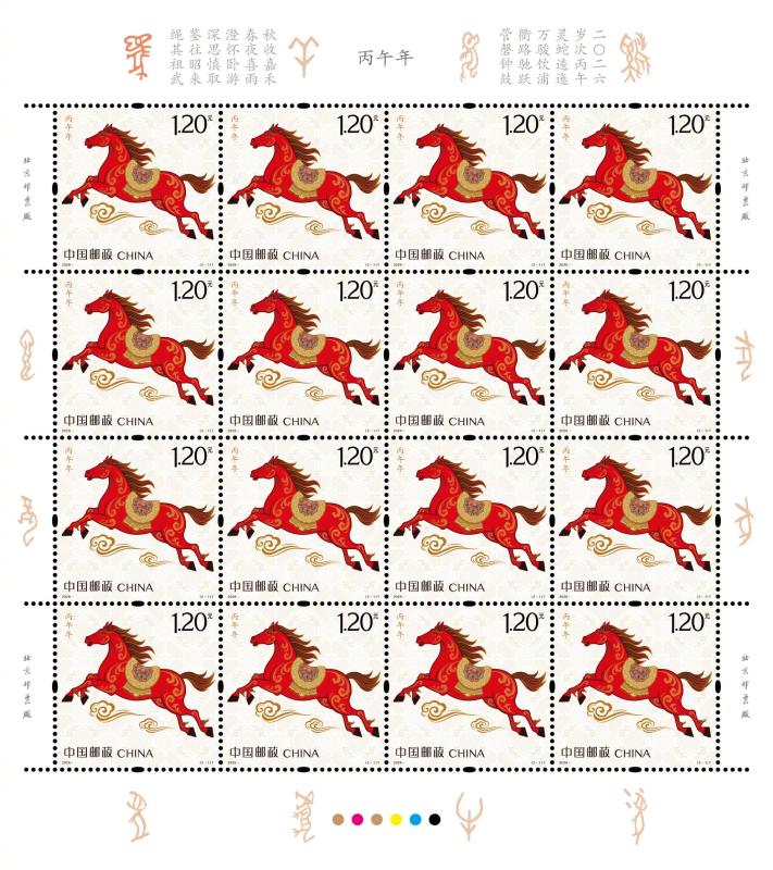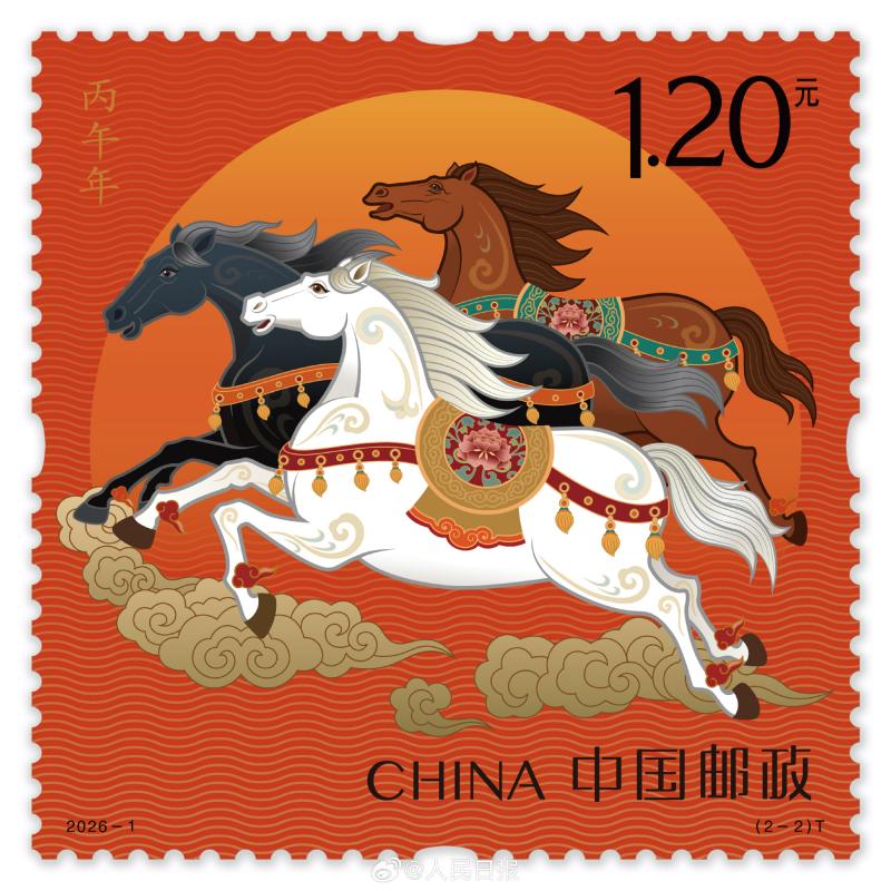 2026年《丙午年》特种邮票今日正式首发。一枚名为《驰跃宏图》,彰显力量;一枚名为《万骏臻福》,体现温情。整套邮票设计线条灵动,骏马姿态昂扬。