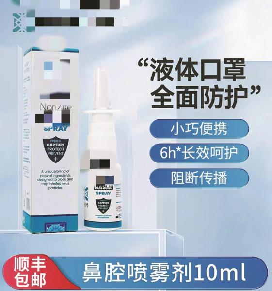 从规格和价格来看,这类产品多为10-20ml的小容量包装,价格区间覆盖100-300元。商家在宣传页面打出“物理成膜阻隔PM2.5/病毒”“喷后即刻起效”“长效防护无需频繁更换”等标语,同时在页面角落标注了“非药品、非医疗器械,不替代药物治疗”的提示。