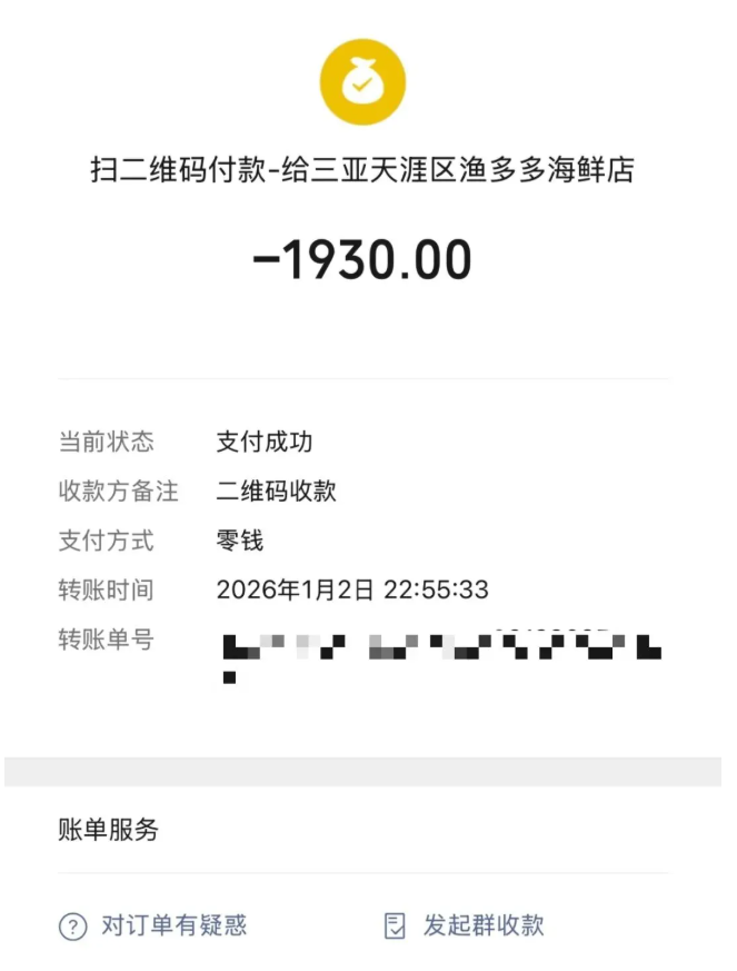 据媒体此前报道,近日,有网友发帖称,与家人在三亚旅游时,被非运营车辆拉到海鲜店吃饭,4道海鲜与2个椰子共消费1930元。点菜时,服务员强调“整个三亚都是这个价格”。三亚市综合行政执法局接线人员告诉媒体,三亚市正在对海鲜消费领域宰客行为进行整治,消费者遭遇宰客后可进行投诉,相应辖区的分局执法人员会第一时间处理。