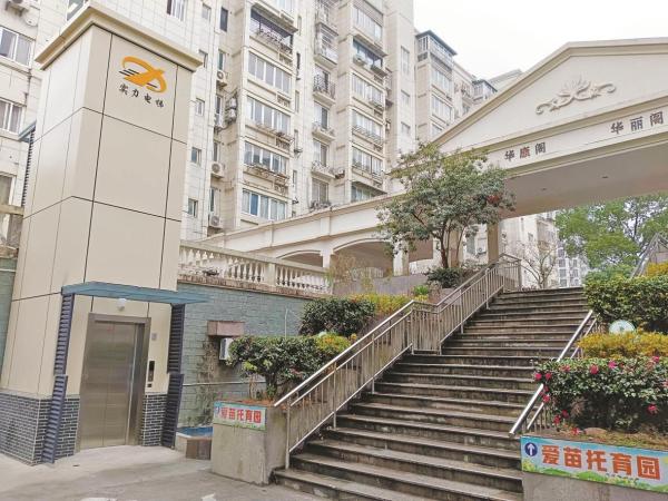 这部占地仅4.5平方米、载重630千克的平台电梯,是华侨城小区居住在华康阁、华丽阁的居民共同的心愿。华侨城小区最早一批住宅建成于1994年,最后一批也建成于2000年,是一个典型的老小区。1288户住户中,老年人占比较高。尤其是建于平台之上的华康阁、华丽阁,60岁以上老年人占比高达38.7%。