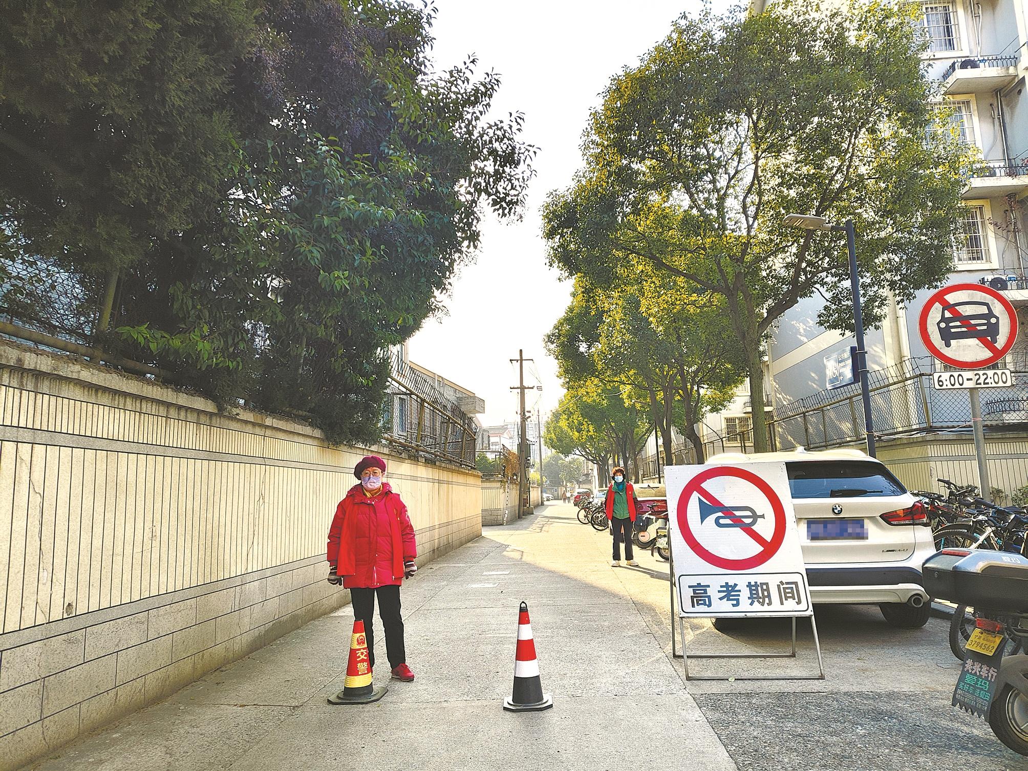 74岁的许华珠站在学校附近街头,手里拿着一张提示牌,压低声音提醒着来往行人。作为镇海招宝山街道城东社区“高考静音护航志愿队”的一员,她和伙伴们又出动了!