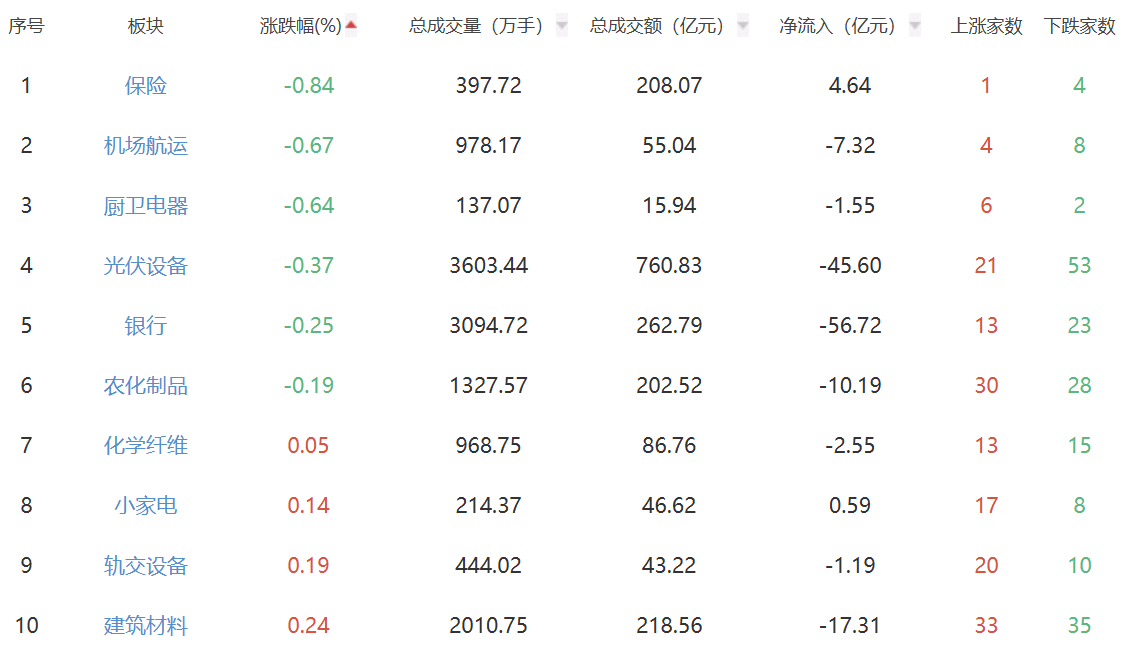 A股市场板块涨跌幅排行