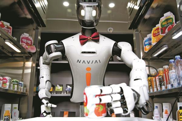 人形机器人在递货。(沈天舟 洪映映 摄)