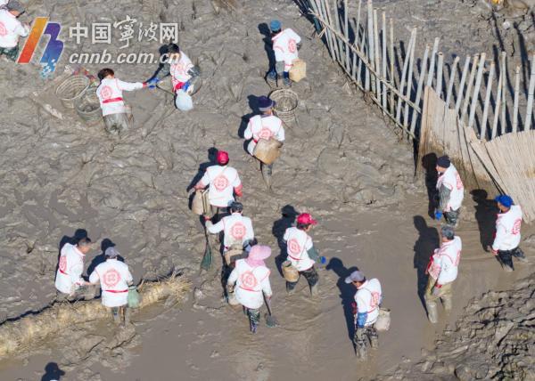 港边冬塘里,传承160多年的县级非遗“抲冬塘”古法捕鱼正在上演。渔民通过传统的搓笆捕鱼方式协力收网,现场洋溢着丰收的喜悦。据悉,一口冬塘最多可收获万余斤泽鱼。