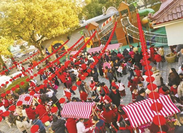 余姚市实验幼儿园爱心庙会义卖活动现场。幼儿园供图
