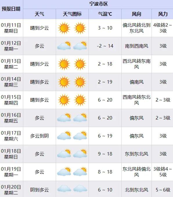 明天多云为主,需要关注的是明天早晨最低气温仅-2℃左右有薄冰,山区-3℃到-6℃有冰冻或严重冰冻,明早出门的朋友要注意保暖。明天白天起气温要开始回升了,这次回暖持续时间相对较长,1月13日至19日的最高气温基本维持在18℃-20℃上下,最低气温也逐渐升至5℃以上。