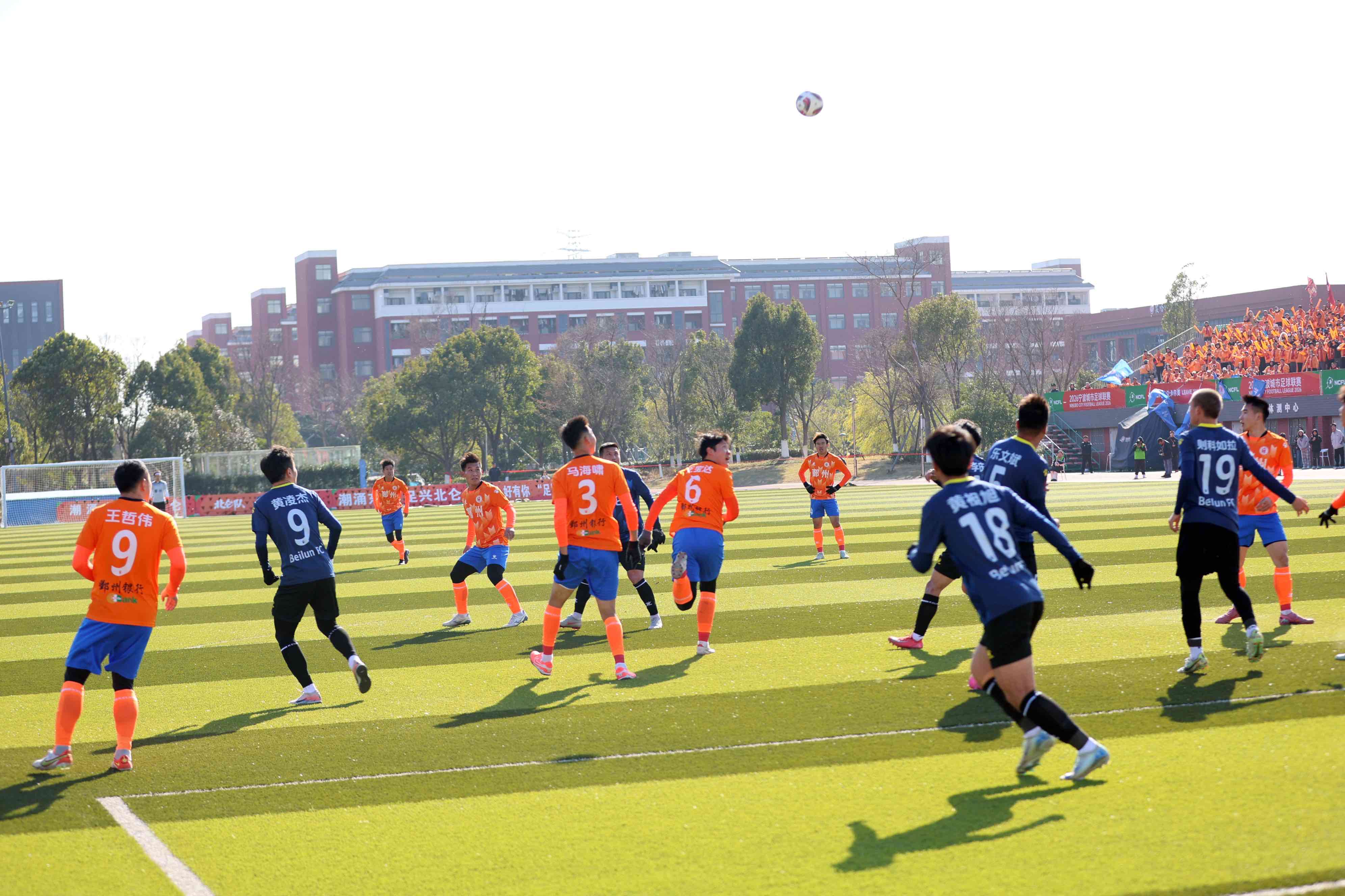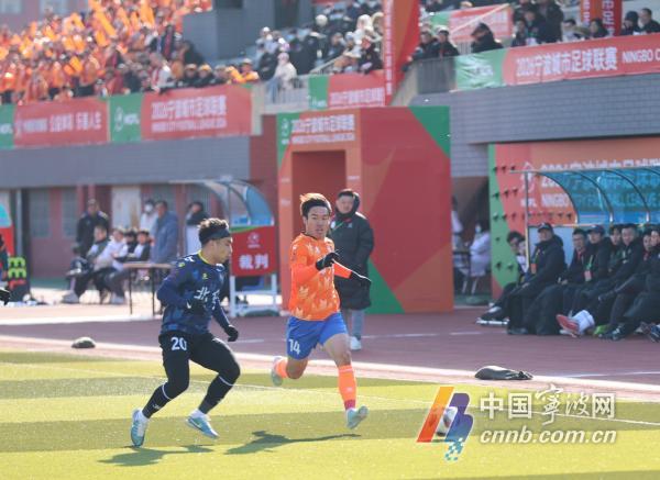 14分钟后,鄞州队右路通过精妙小范围配合撕开防线,传中球准确找到9号王伟哲,后者抢点破门,将比分扳为1:2。