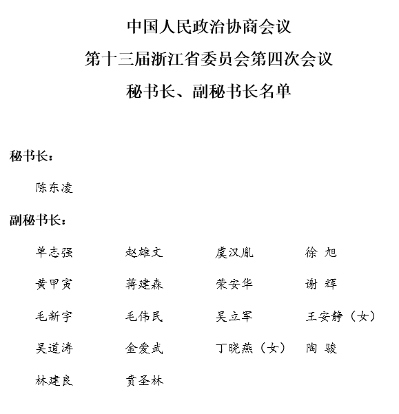 浙江省政协十三届四次会议秘书长、副秘书长名单
