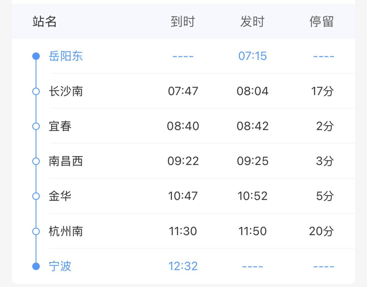 值得一提的是,这趟车每天13:02从宁波始发,17:36即可到达长沙南站,全程仅需4小时34分钟,是宁波至长沙南全程最快的一趟“大站快线”标杆列车。