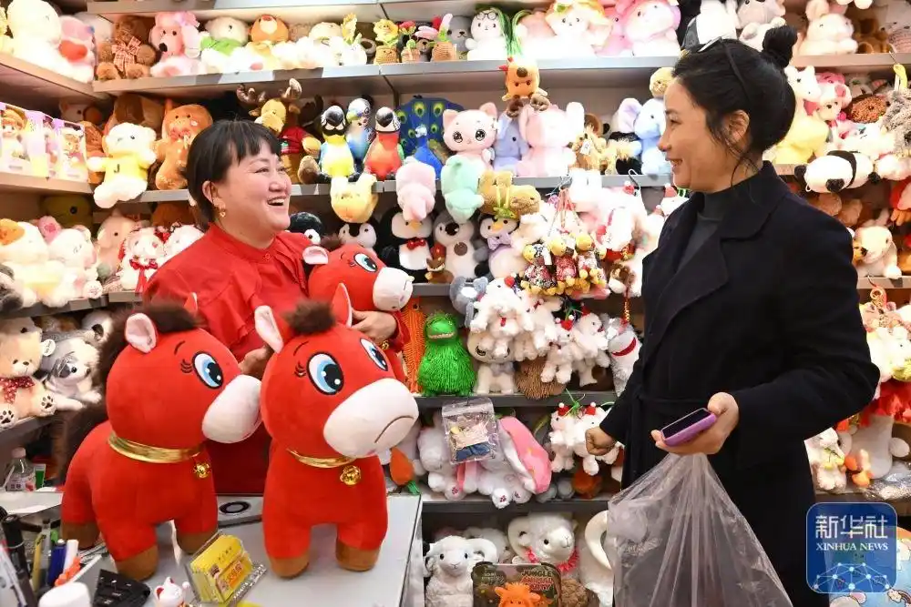 浙江义乌市国际商贸城一区玩具销售区的“哭哭马”小马公仔玩具。图源:新华社