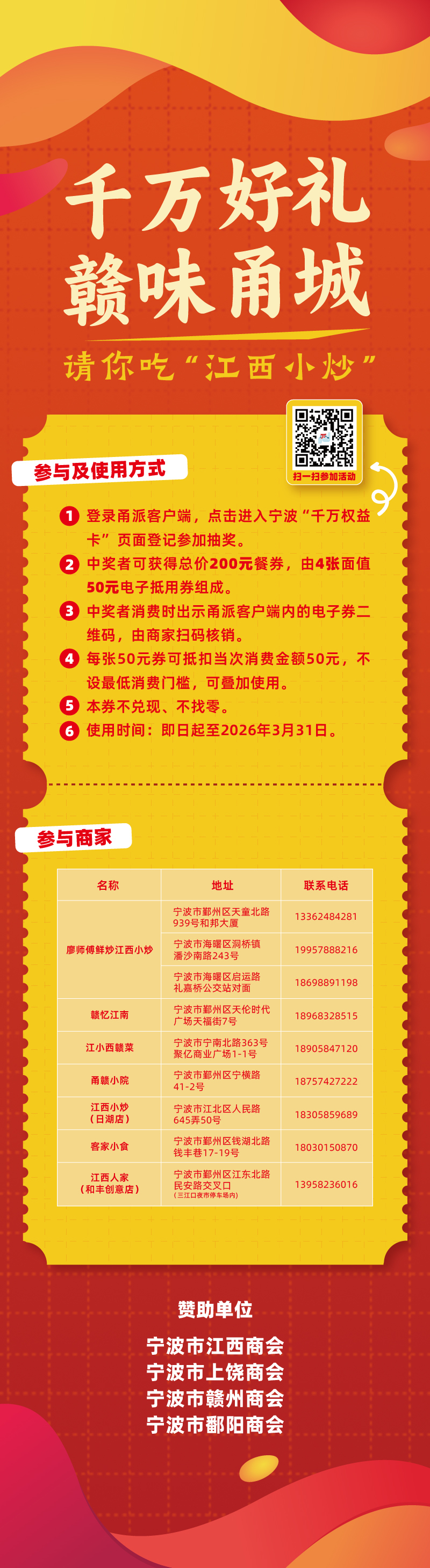 目前,20万房票、“江西小炒”饭票及美食台历,将在后续活动中继续抽取。这份热气腾腾的幸福,正在快马加鞭,奔赴更多宁波人的生活日常。