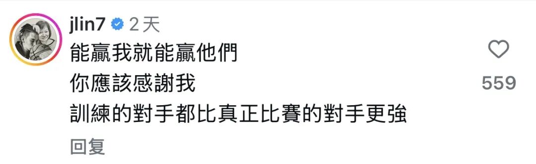 周杰伦曾在社交媒体上多次晒出自己打网球的动态,他的“陪练”包括前NBA球星林书豪。林书豪也在周杰伦宣布参加一球制胜赛后留言:能赢我就能赢他们,你应该感谢我,训练的对手都比真正比赛的对手更强。