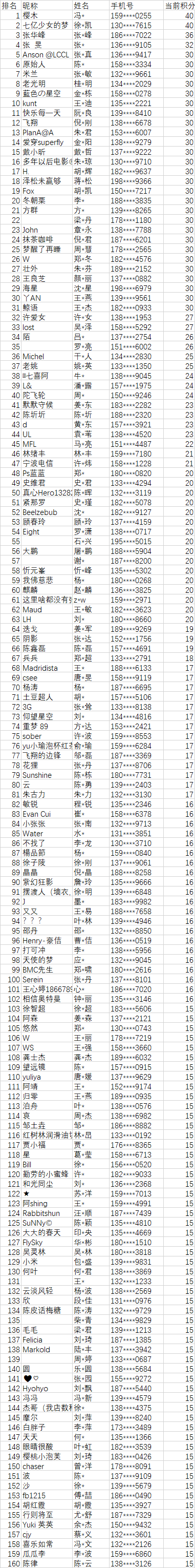 第一轮派奖中奖名单。