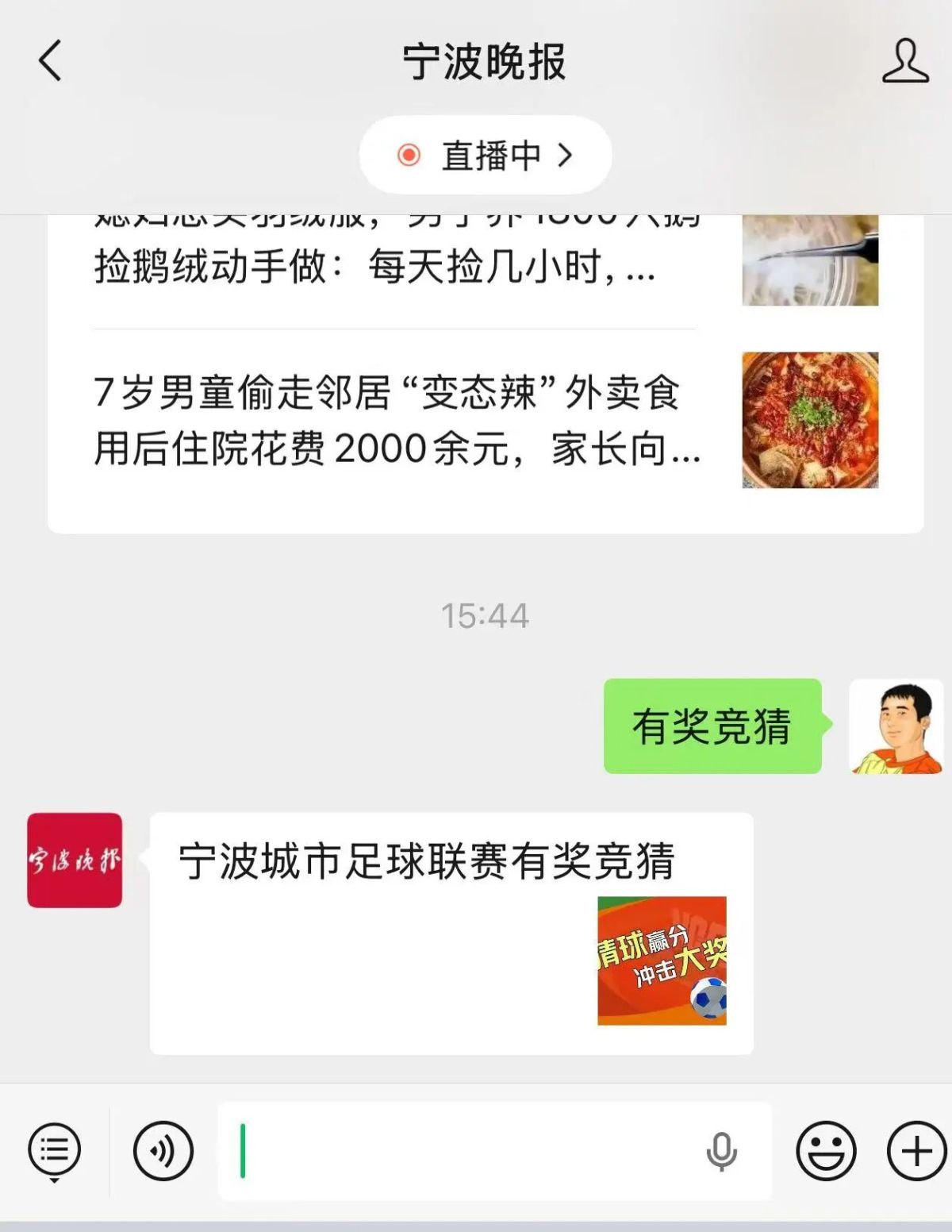 ①在对话框输入“有奖竞猜”,获取竞猜页面;
