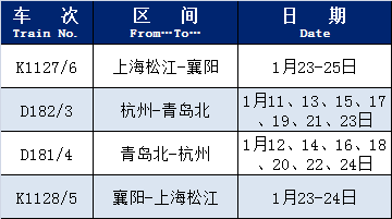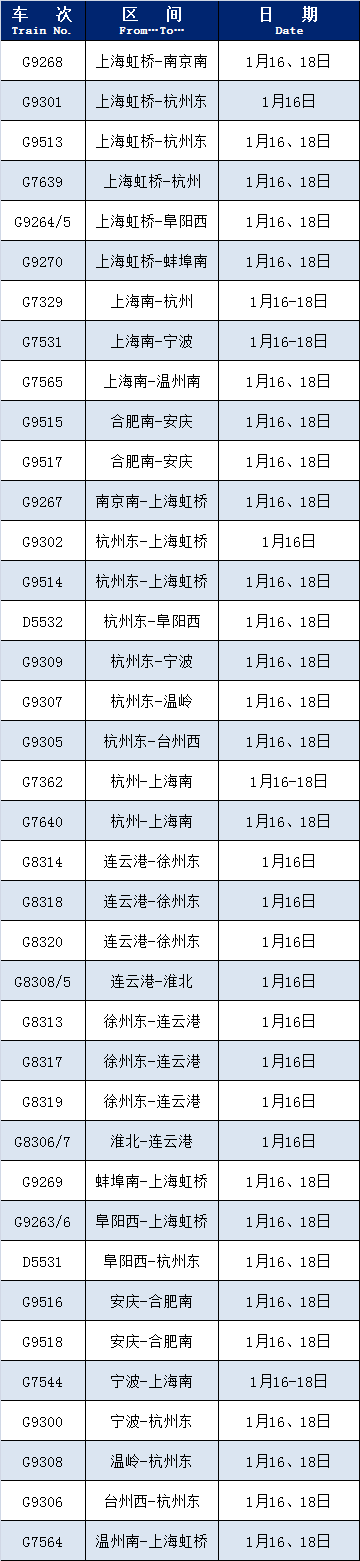 G7564 温州南—上海虹桥 1月16日、1月18日