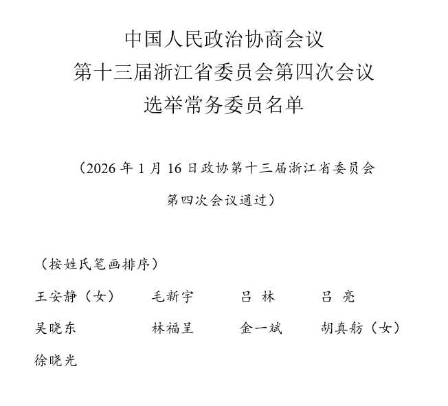 中国人民政治协商会议第十三届浙江省委员会第四次会议选举常务委员名单