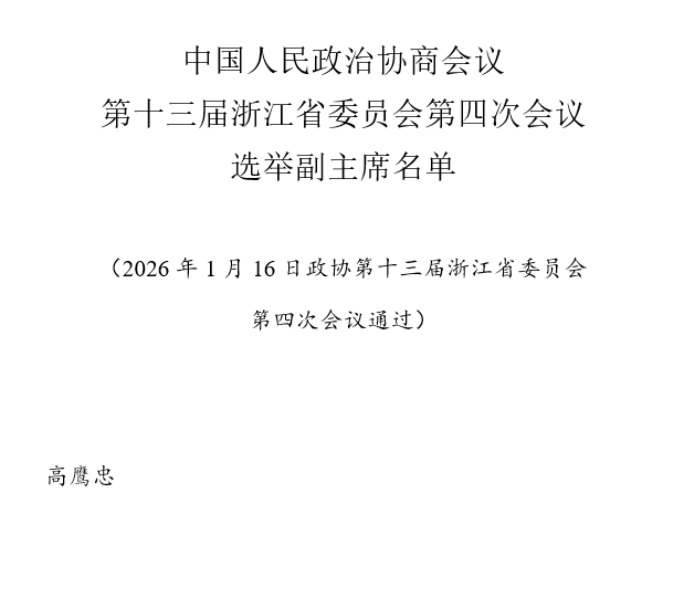 中国人民政治协商会议第十三届浙江省委员会第四次会议选举副主席名单