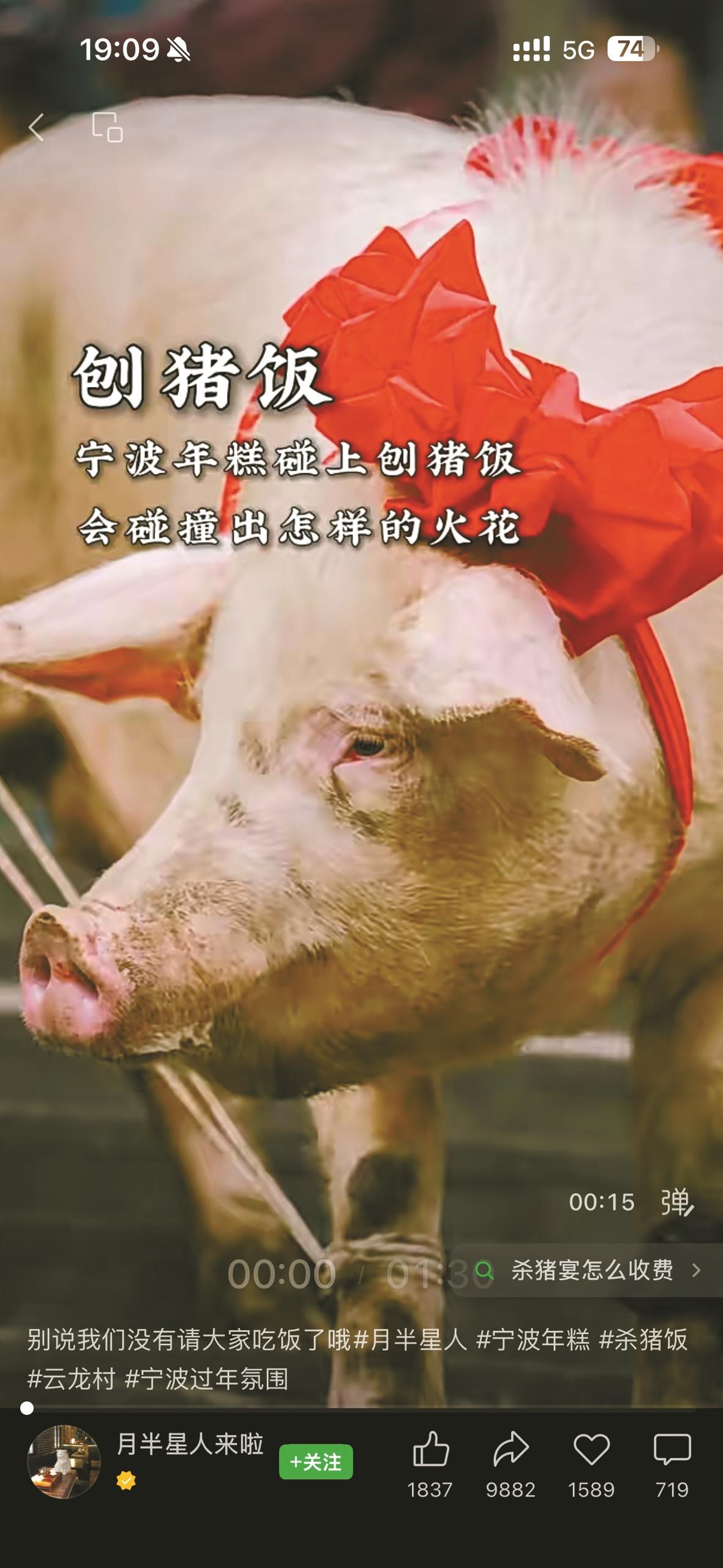 与此同时,名为“胡陈小农民”的博主,近期也通过拍视频的方式“呼朋唤友”,希望大家都来参加1月17日在宁海东山桃园景区举办的“胡陈年猪宴·寻味中国年”活动。“最近重庆的年猪宴非常火,我们希望蹭上这波流量,给大家一个来乡村的理由,感受宁波的年味。”据介绍,目前活动方准备的50桌年猪宴已经满员,看预约形势,很可能还要临时加桌。