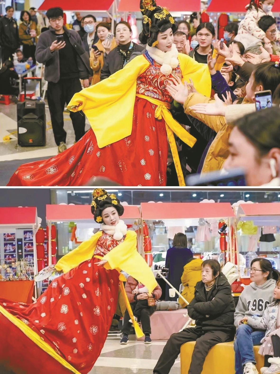 唐韵不倒翁与游客互动。
