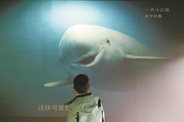 “淇淇”的离开也唤醒了大家对自然的保护。科普馆以“淇淇”在长江中仅存的鲸豚类伙伴长江江豚的故事为转折,展示了“十年禁渔”行动对长江江豚物种保护的积极影响。在这里,能看到中国首头人工饲养二代江豚“小久久”的成长情况,感受我国在生物多样性保护方面取得的巨大成就。