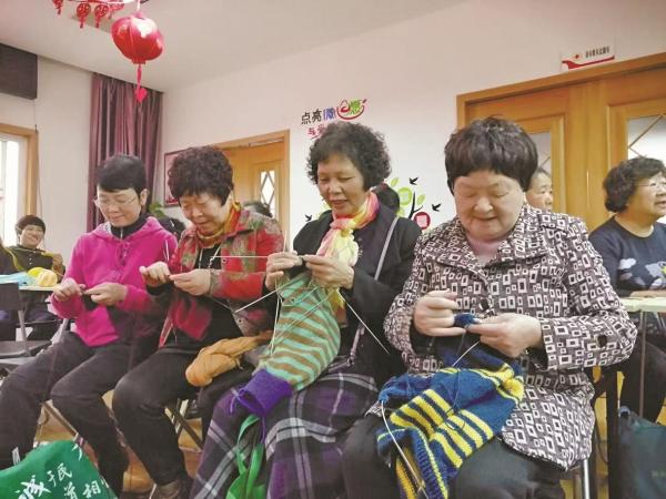 志愿者正在织毛衣。