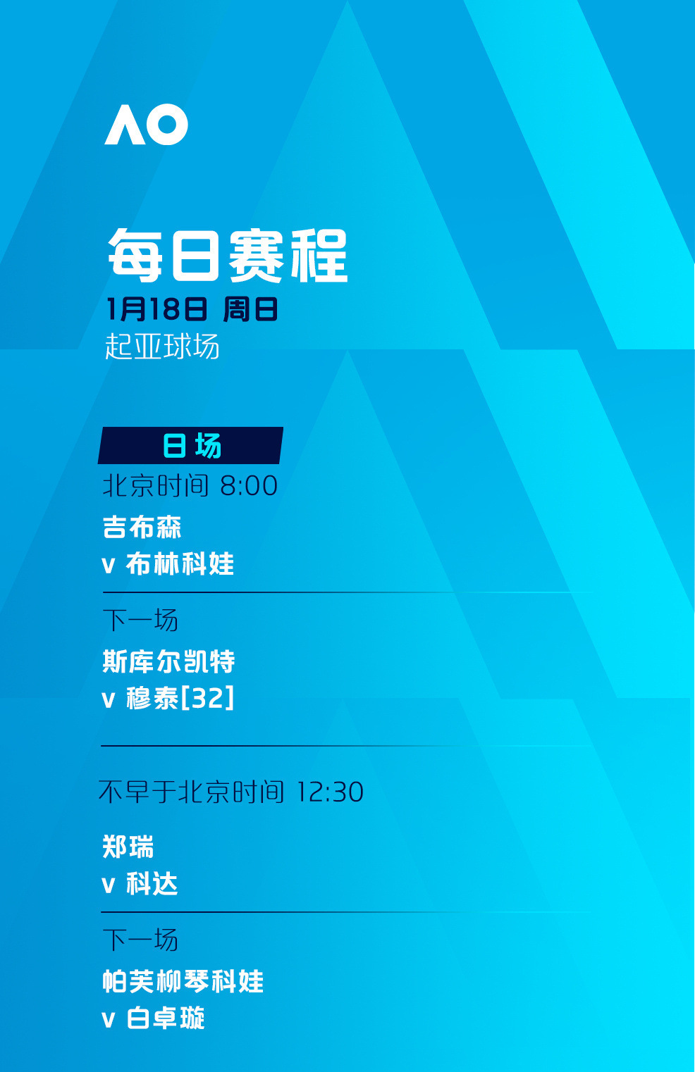 2026年澳大利亚网球公开赛正赛今日正式开打,赛事将于1月18日至2月1日在墨尔本公园举行。