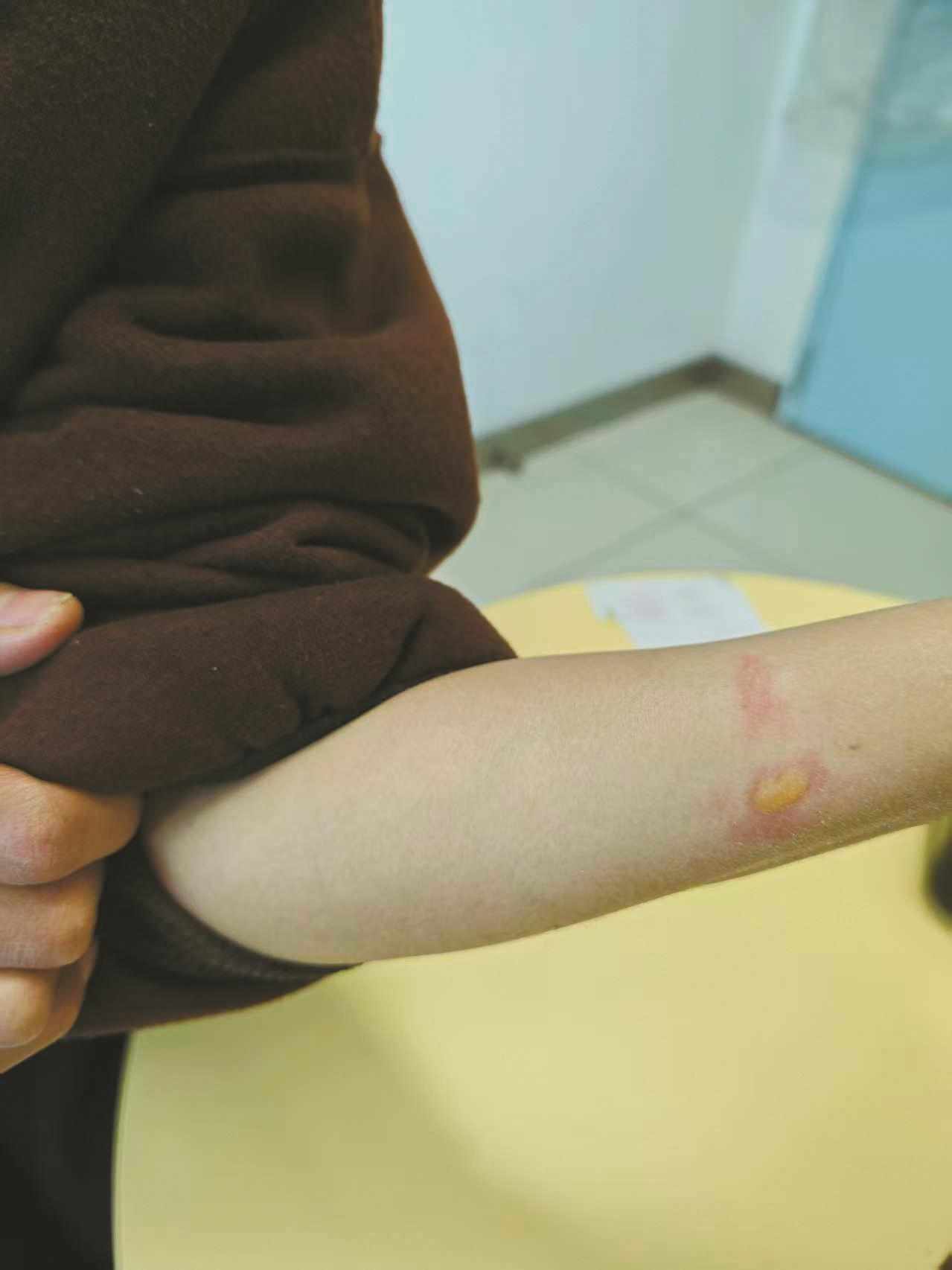 一天早晨,林小姐(化姓)还在睡梦中,却被手臂上一阵阵刺痛惊醒。她抬手一看,左小臂内侧赫然出现一块直径3厘米的水疱。