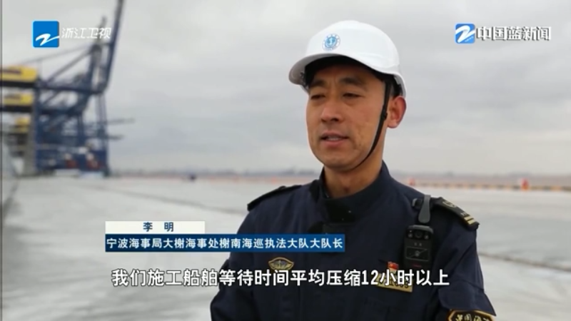 宁波海事局大榭海事处榭南海巡执法大队大队长 李明:审批时间缩短了85%以上,我们施工船舶等待时间平均压缩12小时以上,为项目实施提供了有力保障。