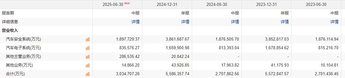 而汽车安全系统又是母公司均胜电子的支柱性营收来源。Choice显示,2022年至2024年,均胜电子汽车安全系统营收占公司各期营收总额的近70%。