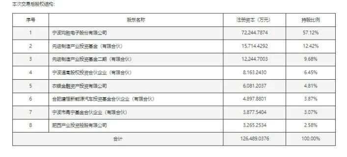值得一提的是,先进制造业投资基金由财政部和国开行共同发起,重点投向新能源汽车、生命科学、信息和通讯技术等先进制造产业领域,其投资人包括金融机构、社保基金、国有及民营资本等。而合肥建恒、肥西产投、宁波通高基金和甬宁基金均为地方国资。