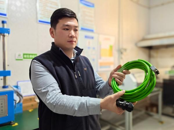 怎么办?企业创新团队动起了脑筋。改变铜丝结构、调整塑料分子类型……一点点试,一次次测,让线束拥有了高柔性。哪怕折弯几千万次,它依然能“血脉畅通”,让机器人正常运行。